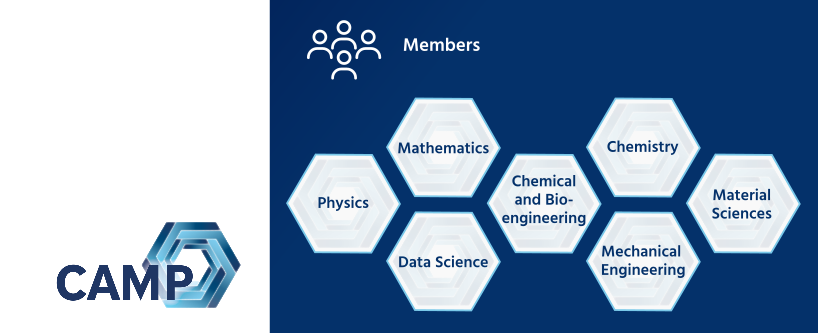 CAMP comprises members from a wide range of research disciplines including mathematics, physics, chemistry, data sciences, material sciences, mechanical engineering and chemical and bioengineering. Together we conduct outstanding colaborative research and extend the scope of computational materials and process research.